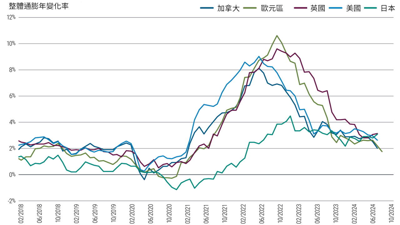 在其他已開發市場,較弱的需求、寬鬆的勞動力市場,以及錨定的通膨預期,也意味著2025年通膨將趨近於目標。加拿大是已開發經濟體中,通膨最有可能會低於目標水準的國家,而澳洲的勞動力市場指標則顯示該地區進展較慢。