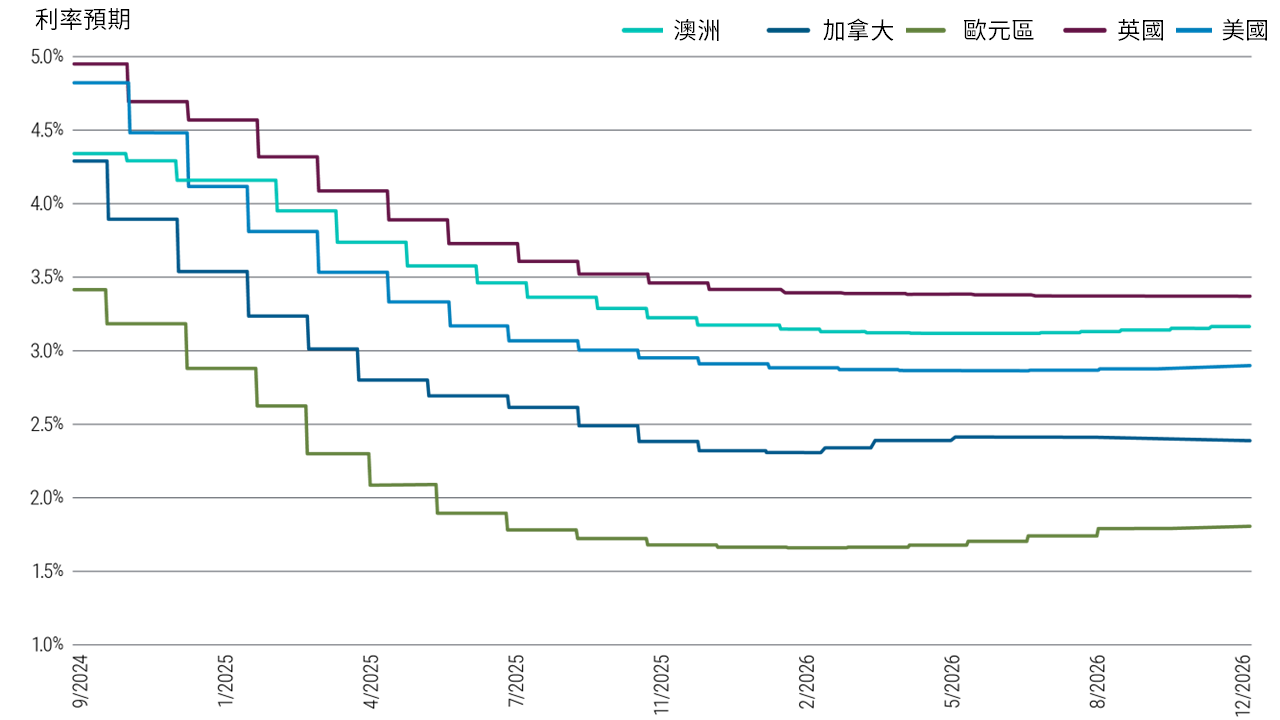 有鑑於中性政策利率水準的不確定性,各國央行很自然地採取分段式降息措施,以觀察其對經濟的影響。如果經濟成長再次加速及通膨升溫風險再現,各國央行隨時可以暫停或減緩寬鬆政策;另一方面,若成長下行或就業市場衰退,也能更積極地降息。從各種情境來看,我們相信各國央行有進一步降息的空間。