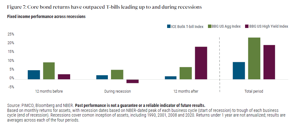 While timing macroeconomic events such as peak policy rates or recessions can be challenging, markets typically begin to correct ahead of these events. In the broader portfolio context, core and other high quality bonds may now offer more attractive downside risk benefits relative to cash in a risk-off environment.
