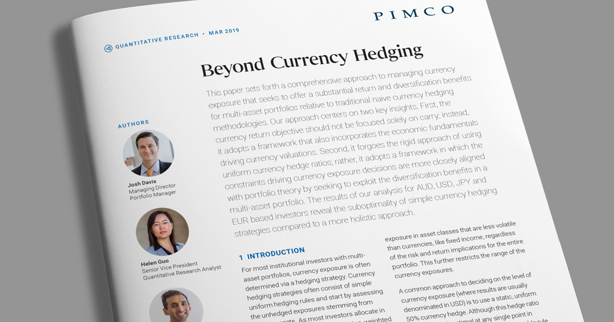 Ms. Guo is an executive vice president in the Newport Beach office. She co-heads client solutions and analytics for the Americas and Asia-Pacific regions, covering thought leadership, client analytics, solutions, client facing infrastructure, and client data science. She joined PIMCO in 2010 and specializes in research and modeling to provide customized solutions to clients on asset allocation and risk management. She is a member of the Research Committee of the Institute for Quantitative Research in Finance (Q Group). She has 16 years of investment experience and holds a Ph.D. in economics and a master's degree in statistics from Stanford University.