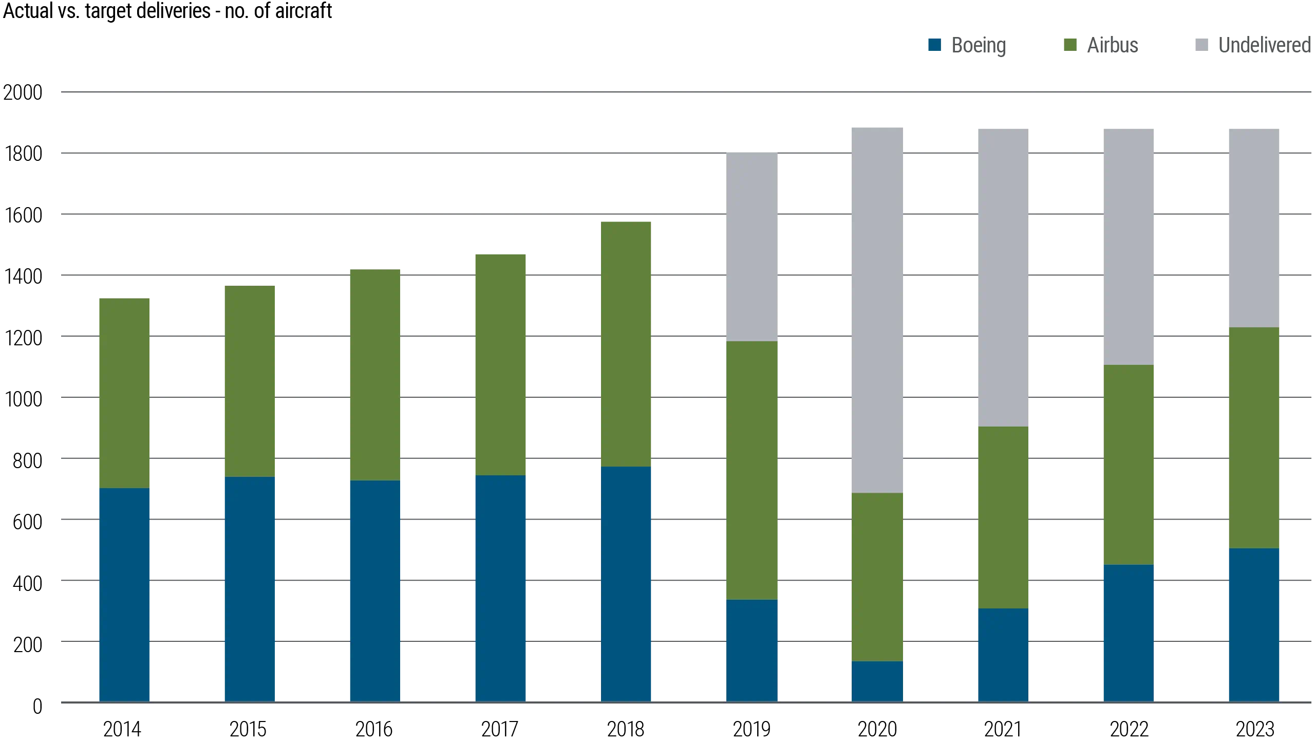 Figure 3: Airbus and Boeing have underdelivered vs targets from 2019 onwards